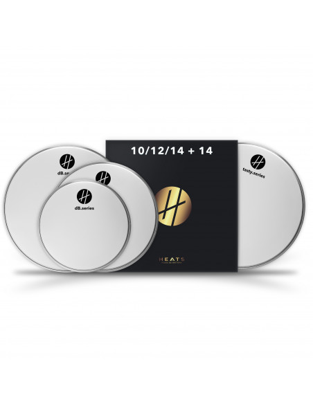The dB.Series Coated Pack is highly appreciated by drummers who seek warmth, depth, and control. It includes 3 coated dB tom heads in sizes 10", 12", and 16", along with a 14" Tasty coated snare head, a flagship of the HEATS range.