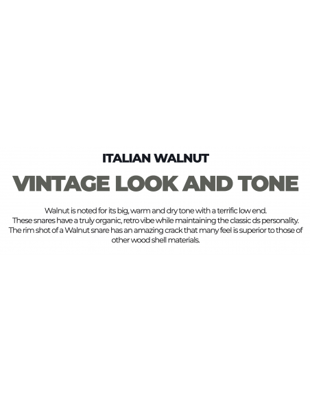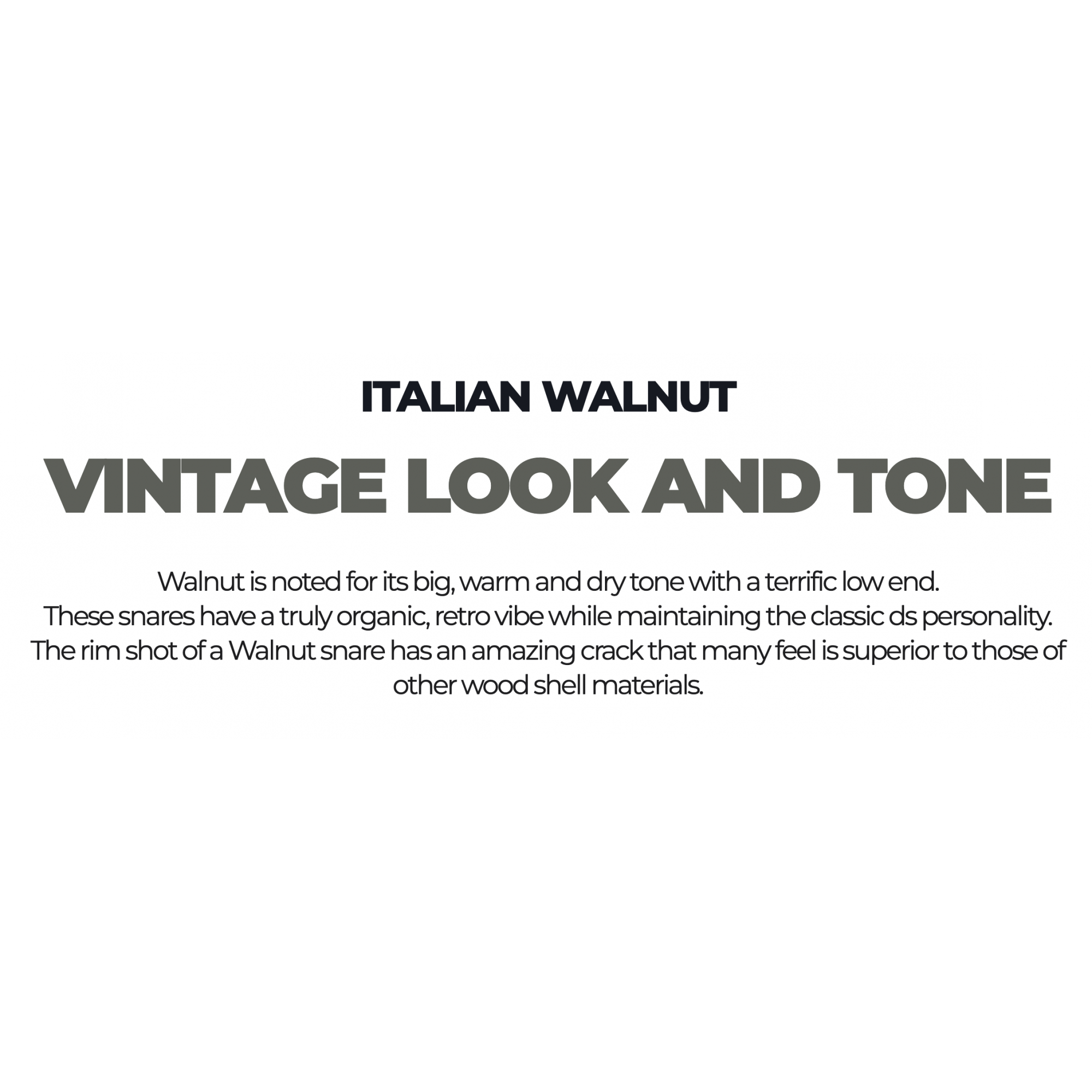 Walnut is known for its big, warm, and dry tone with a monstrous low end. These snares showcase an organic, retro color while maintaining the classic personality that DS Drum is known for. The rimshot of a walnut snare has a fabulous grain that many drummers consider superior to other wooden shells.