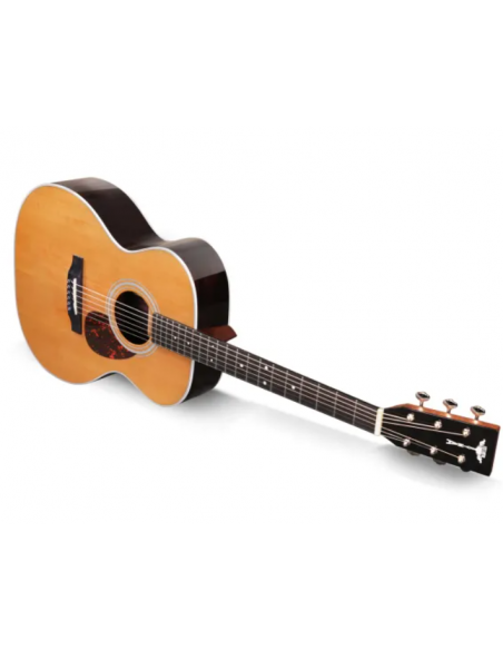 The Tyma TF-28 features an OM (Orchestra Model) body shape, designed to deliver the perfect balance between acoustic projection, tonal finesse, and playing comfort.