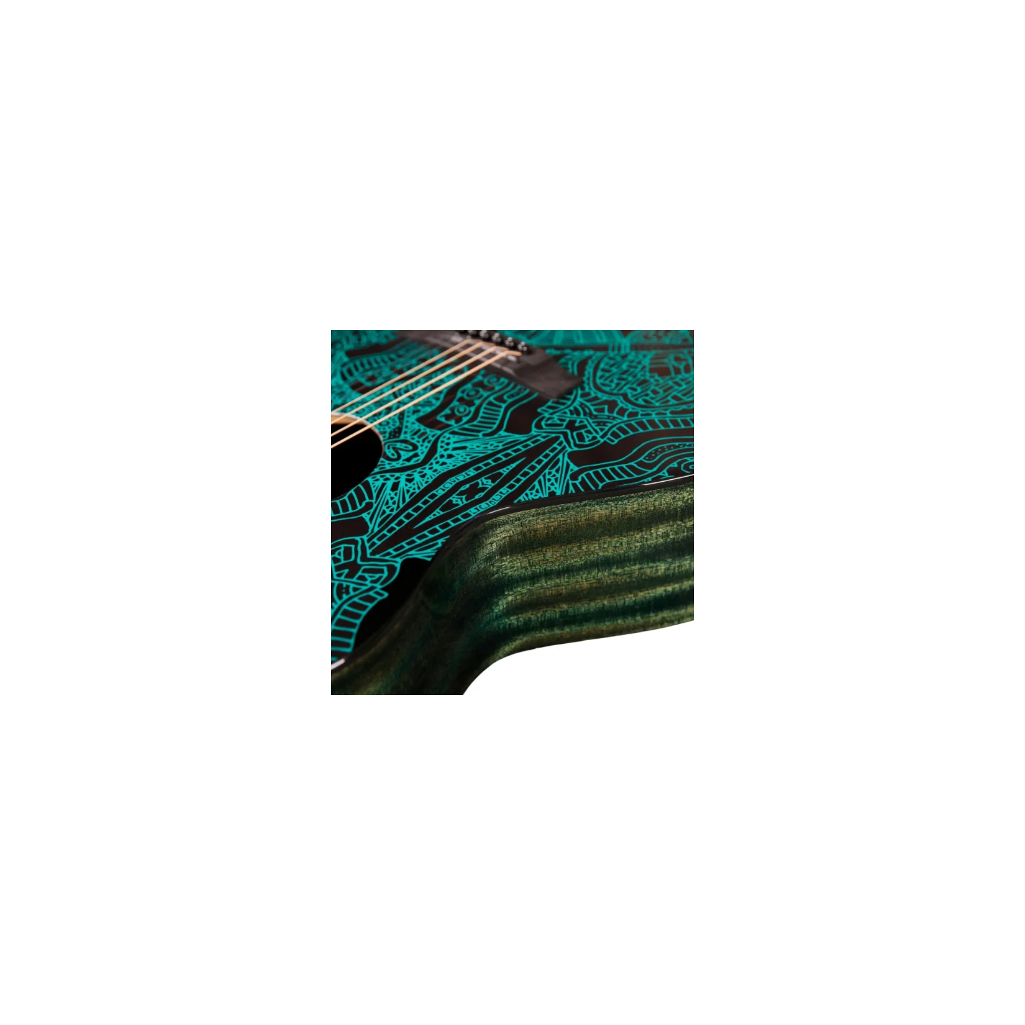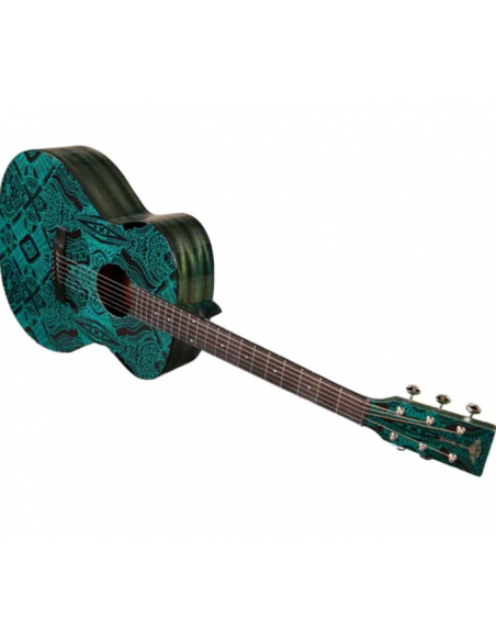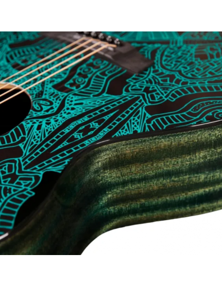 The laser-engraved Maze design gives this guitar a unique identity, while keeping a natural satin look. Its mahogany neck and Ebony fingerboard ensure smooth playability and durability.