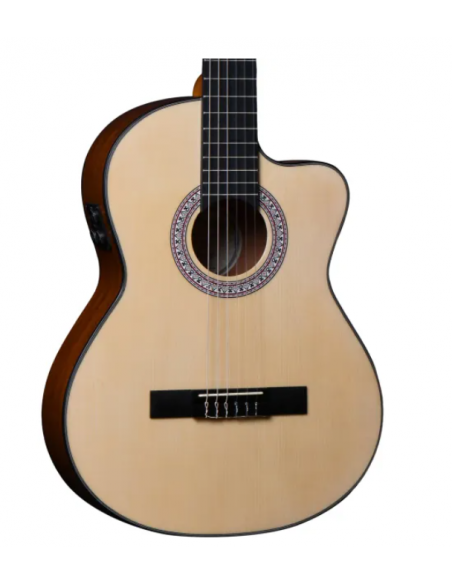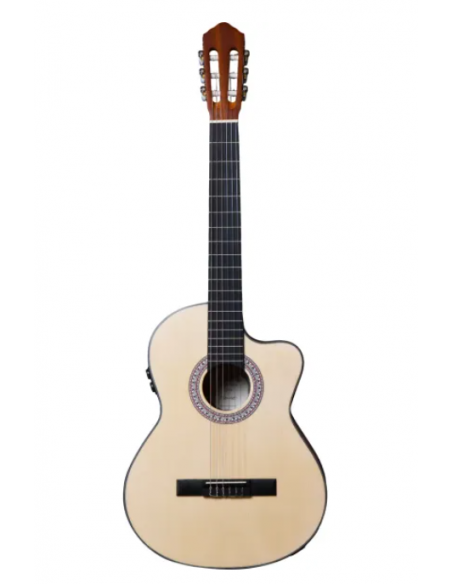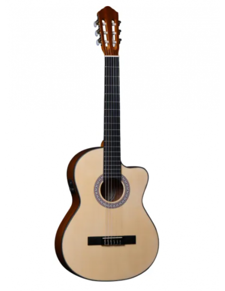 The okoume neck combined with an engineered wood (Tech Wood) fingerboard ensures smooth playability and long-term stability, providing a comfortable experience for daily use. Its natural satin finish highlights the wood grain, giving the instrument a refined and timeless appearance. The Santana 20 SA embodies a perfect blend of tone, comfort, and practicality. An instrument that grows with the player while maintaining its elegance and sound integrity.