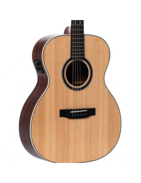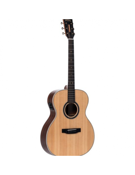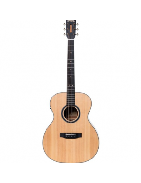 Its solid Sitka spruce top provides exceptional clarity, dynamic response and projection, while the sapele back and sides add warmth, depth and tonal balance. The oriental mahogany neck combined with a Black Purple Heart fingerboard and matching bridge ensures stability, durability and comfortable playability.