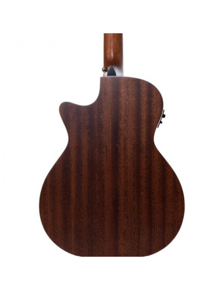 The satin brown burst finish highlights the natural wood aesthetics and gives the instrument a classic yet modern look, ideal for stage, studio or acoustic sessions.