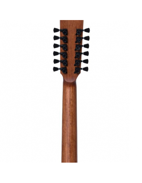 Its solid Sitka spruce top delivers exceptional clarity and strong projection, while the back and sides in sapele offer harmonic warmth and deep resonance. The neck in oriental mahogany, paired with a Black Purple Heart fingerboard, ensures durability and comfortable playability even with a twelve-string configuration.