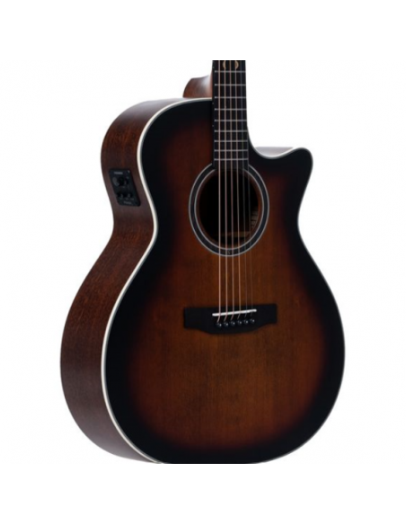 The built-in Fishman Presys II system with integrated tuner enables direct and precise amplification, making it ideal for stage or studio use. The satin brown burst finish highlights the wood grain and gives it a modern-chic look, ready for fingerstyle, rhythm playing or solo performances.