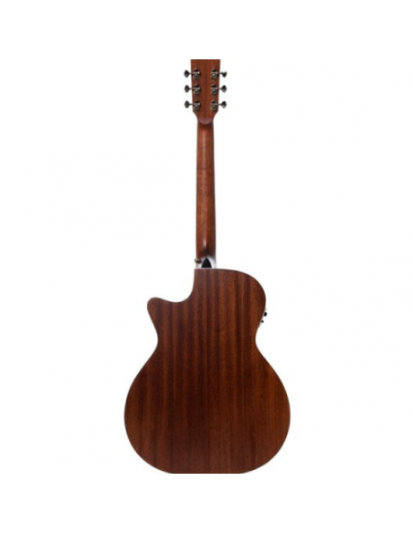 Its solid Sitka spruce top delivers rich, balanced and responsive tone, while the sapele back and sides add warmth and depth to the timbre. The oriental mahogany neck and Black Purple Heart fingerboard provide exceptional stability and a smooth feel, even in this demanding setup.