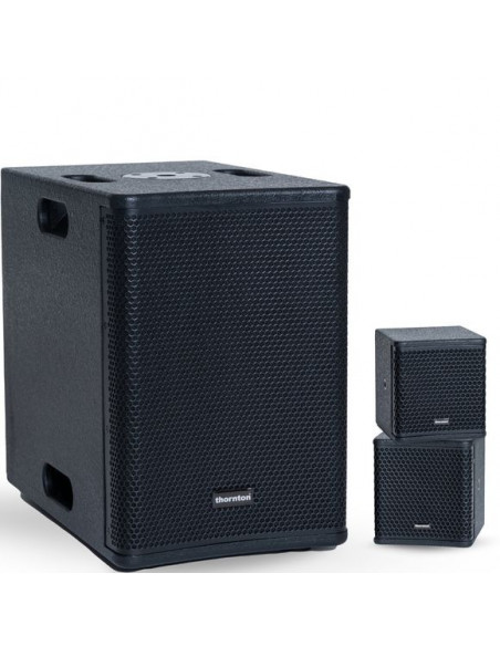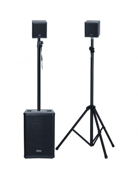 The TH-Venice-10-4-BK pack provides a fully integrated audio solution designed for users seeking a powerful, versatile and easy-to-deploy system. Its black finish offers a clean, professional appearance that suits stages, multipurpose venues, bars, conferences, DJ setups or fixed installations. This set includes an active subwoofer, two satellite speakers, a high-quality Speakon cable and a sturdy speaker stand, forming a coherent system for efficient sound reinforcement.