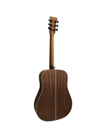Its spruce top (black satin finish) delivers clear attack and rich dynamics, while the mahogany back and sides add warmth and depth. The neck in oriental mahogany paired with a rosewood fingerboard ensures comfortable playability and lasting stability. A nut width of 43 mm and a 650 mm scale length make it great for full-size hands and rhythm playing.