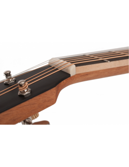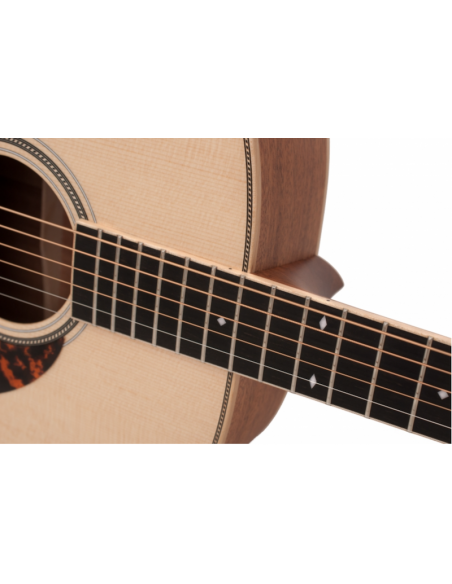 Combining a solid Sitka spruce top with a solid mahogany back and sides, it delivers a warm, precise sound rich in midrange, ideal for fingerstyle, acoustic blues, or intimate sessions.