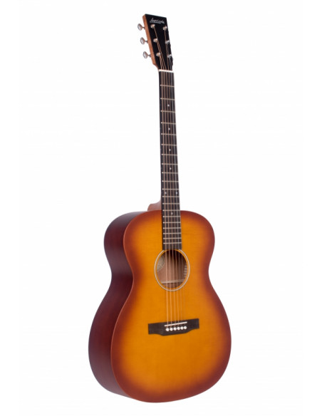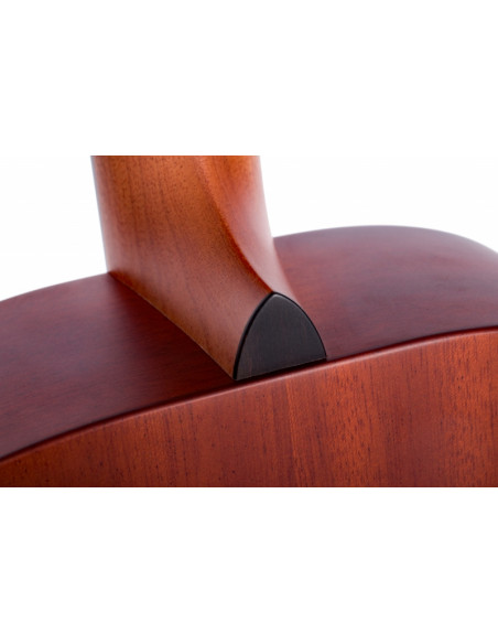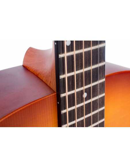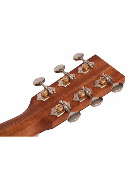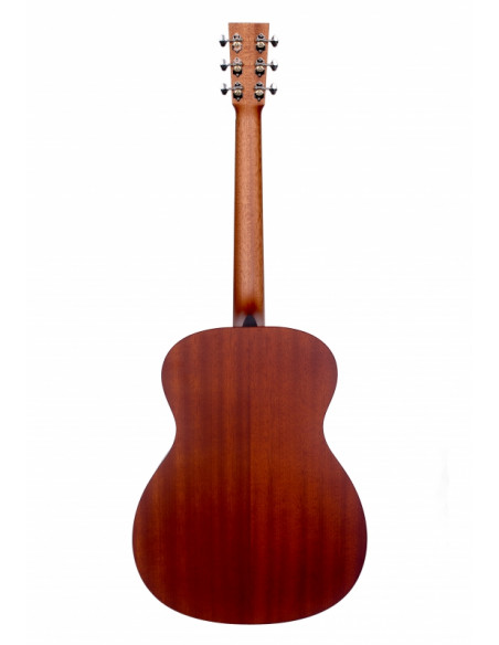Built with a solid Sitka spruce top and a solid African mahogany body, this guitar delivers a warm, midrange-rich and perfectly balanced sound. Its lightweight (hollowed/sculpted) X-bracing maximizes resonance and ensures excellent dynamic response.
