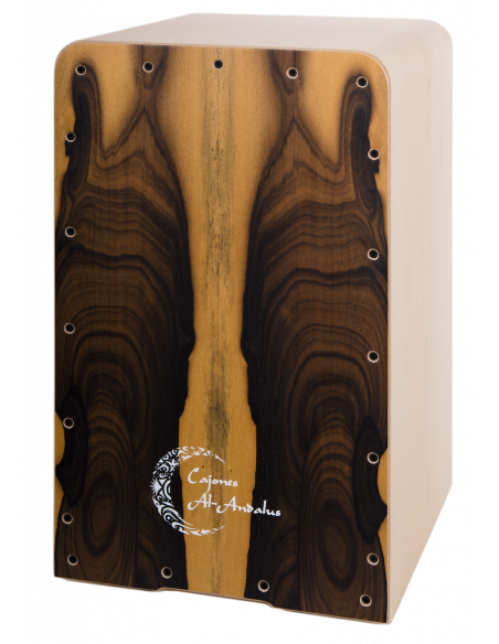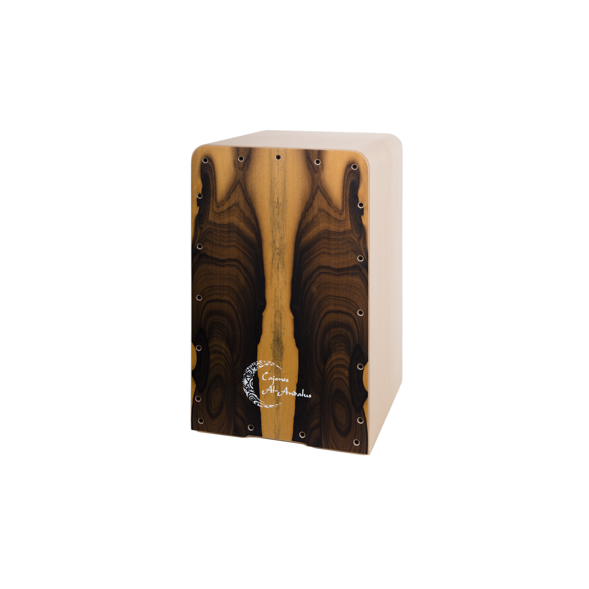 To make the Jaleo Al-Andalus model, we used birch as the base. This wood is characterized by its great sound projection, which in turn provides a good balance between bass and treble. Like the entire Elite series, the Jaleo is a high-end cajon with meticulous finishes. We chose maple wood to cover the body and back of the instrument. But what really sets this professional cajon apart is the ziricote veneer we apply to the front. This wood has a spectacular presence and beauty thanks to the contrasts between its green, brown, black, and grayish colors and its yellow sapwood. This is why it is considered a precious wood, giving the cajon a noble and elegant appearance that matches the high quality of its sound.