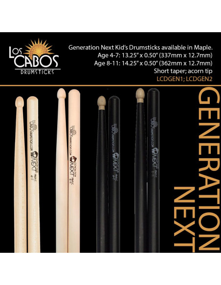 For toddlers and children, Los Cabos has developed drumsticks adapted to their age: Generation Next for ages 4 to 7 and then ages 8 to 11.