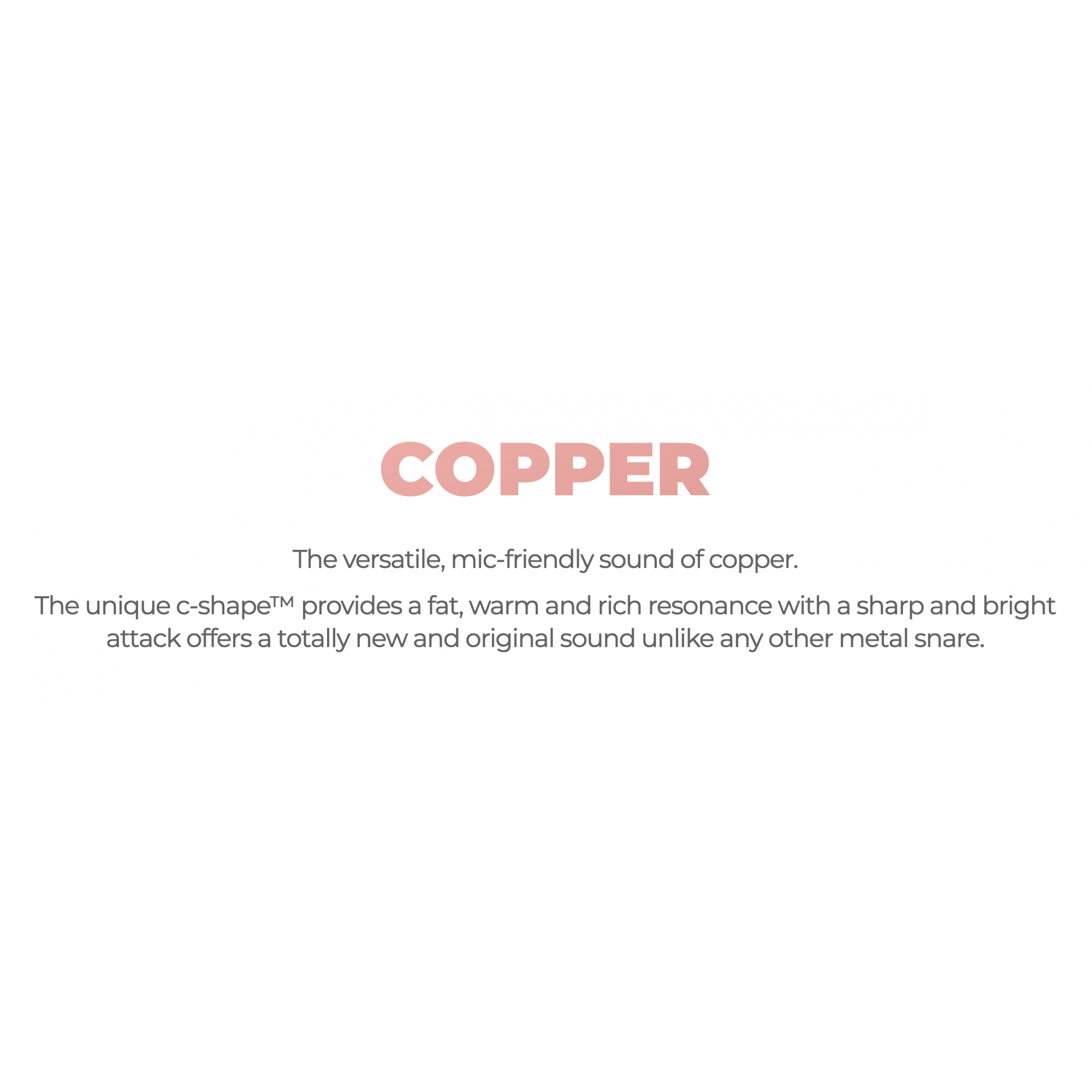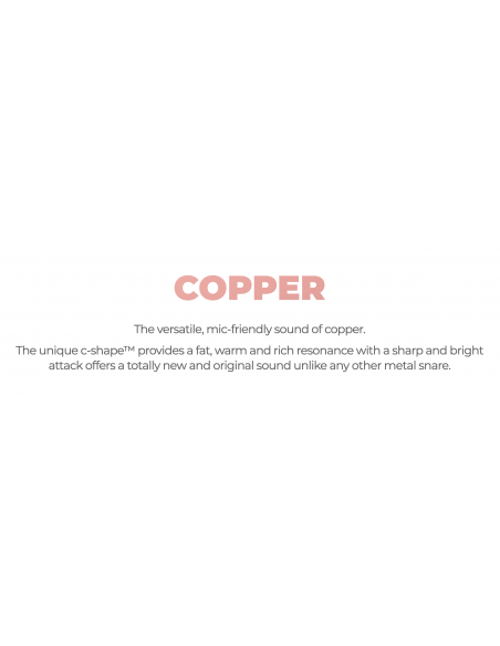 Le son polyvalent et généreux du cuivre. Le procédé unique c-shape™ par DS DRUM procure une résonance grasse, chaude, riche ainsi qu'une attaque nette et brillante. Le son obtenu est totalement moderne, original et nouveau, contrairement aux autres caisses claire en métal.