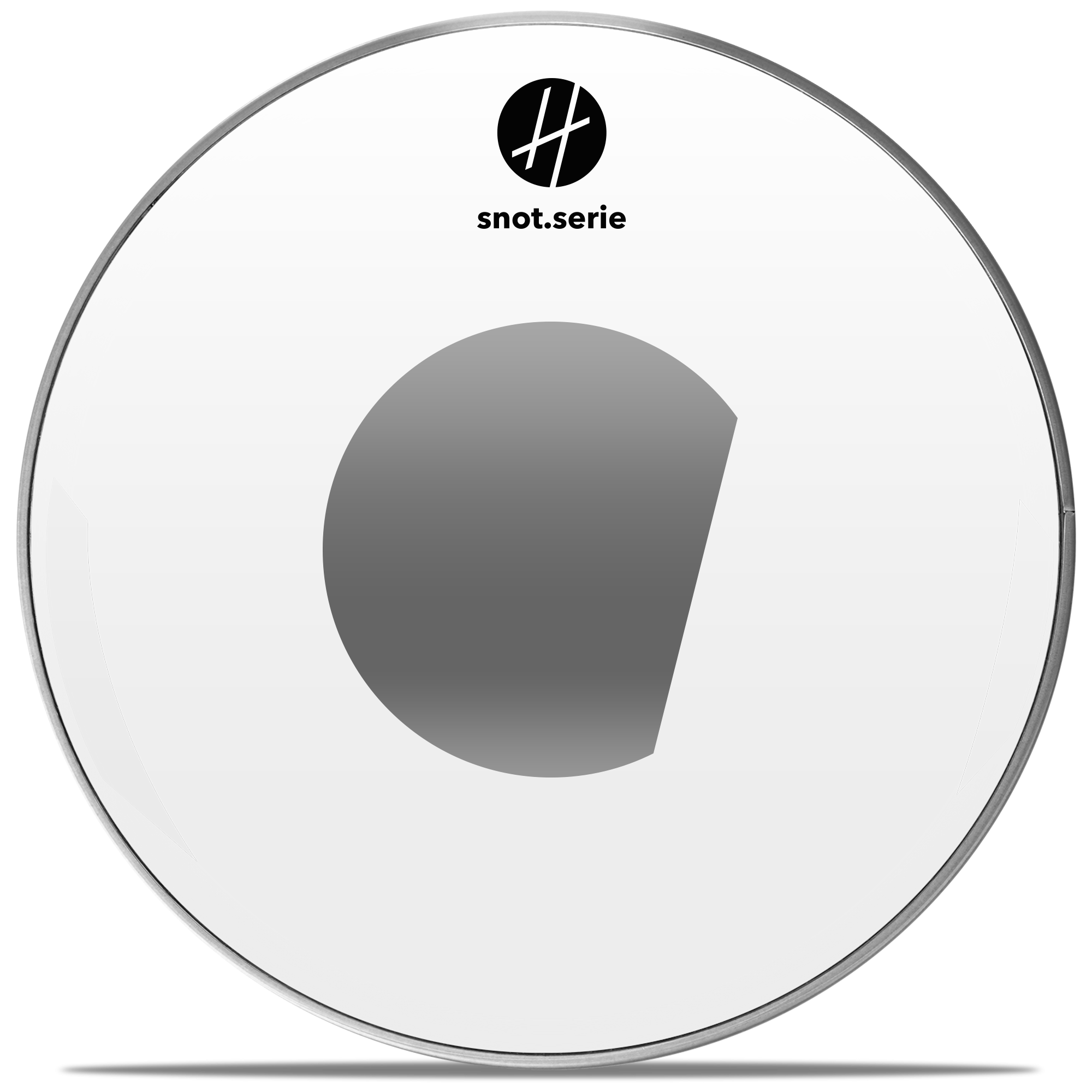 La snot.series Clear est une peau vintage par essence, composée d’un pli unique de 10 mil avec un anneau central tronqué (¾ de cercle gris) collé sur le dessus. Très populaire dans les années 70, elle offre une attaque ronde et précise, une tonalité médium riche, et des harmoniques chantantes qui subliment vos toms et caisses claires.