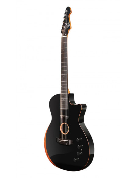 La Tyma TE-1BK est une guitare hybride unique, conçue pour combiner les sons acoustiques naturels et électriques puissants dans un seul instrument compact et moderne.