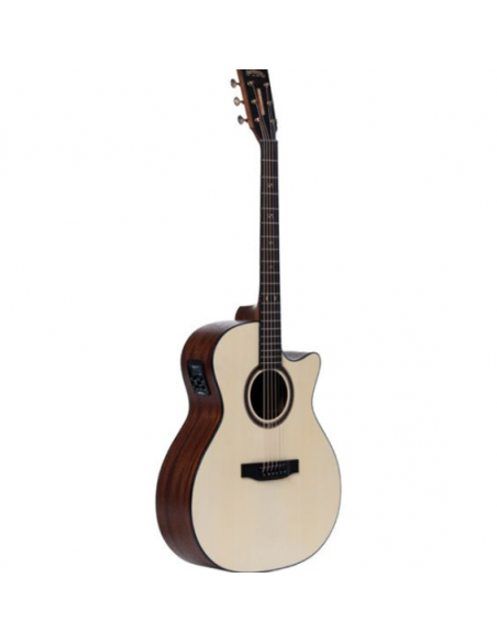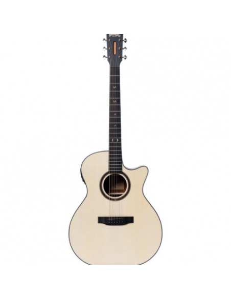 Le format Grand Auditorium offre un excellent équilibre tonal, adapté tant au fingerstyle qu’au jeu rythmique. Grâce au système intégré Santana K4T avec accordeur embarqué, cette guitare est prête pour la scène, le studio ou la maison : branchement direct, accordage facile, son amplifié équilibré. Le fini naturel satin met en valeur les veines du bois pour un look authentique et raffiné.