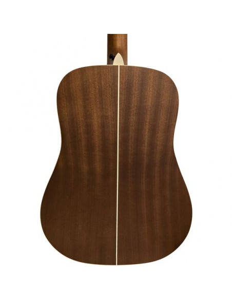 Sa table en épicéa (verni en finition noir satinée) offre une attaque claire et une belle dynamique, tandis que le dos et les éclisses en acajou ajoutent chaleur et profondeur au son. Le manche en acajou oriental associé à une touche en palissandre offre une prise en main confortable et stable. Sa largeur de sillet de 43 mm et son diapason de 650 mm en font un modèle adapté aux pleines mains comme à l’accompagnement.