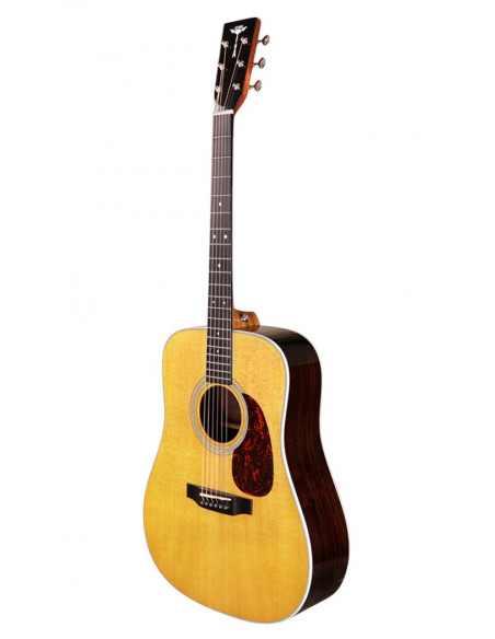 Son dos et ses éclisses en palissandre indien massif complètent avec chaleur, richesse harmonique et dérivée de sustain important. Le bloc chevalet, la touche et les mécaniques sont choisis avec soin pour assurer